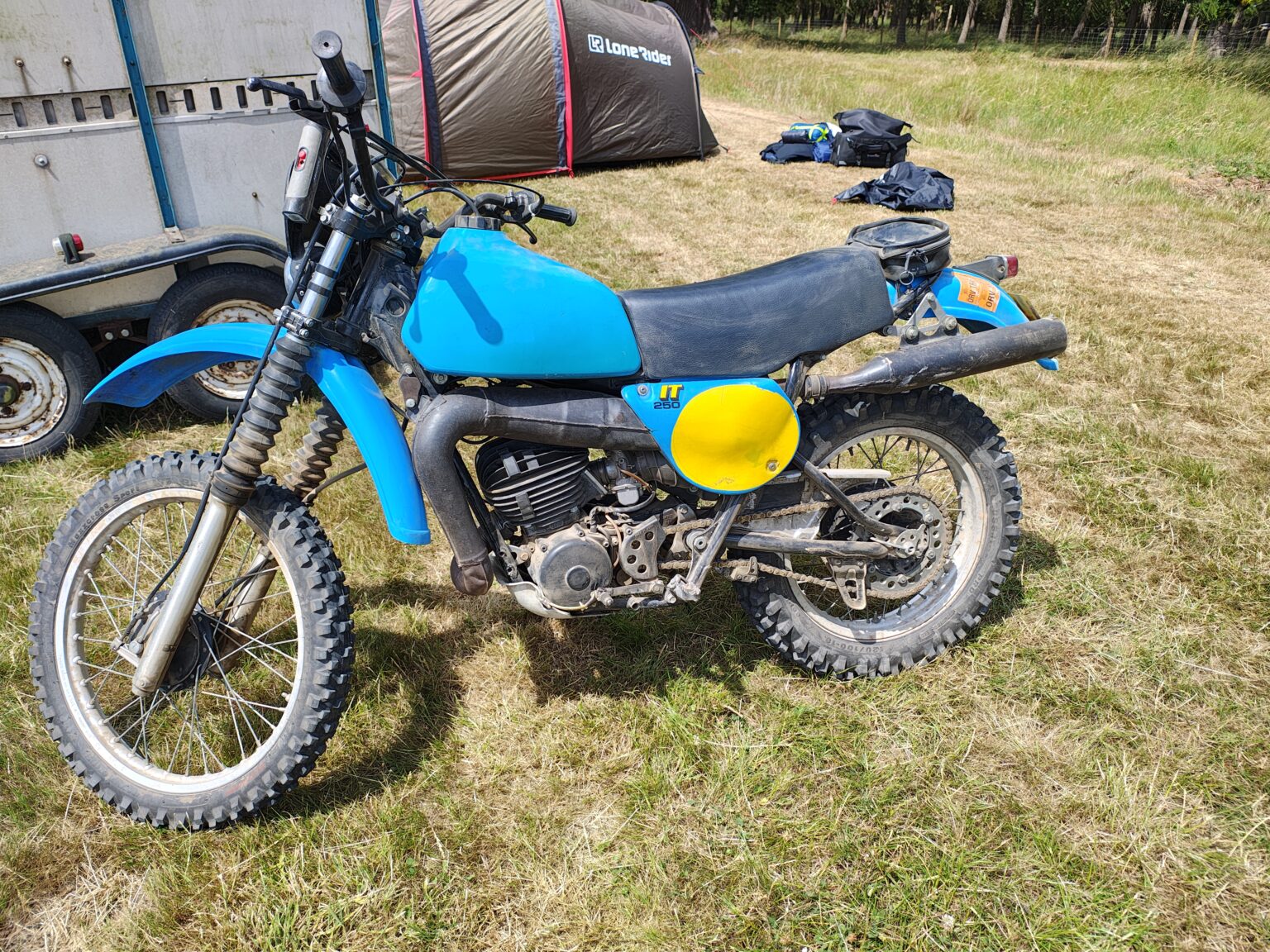 Yamaha IT250F 1978, it's had 1st oversize rebore, new main bearings, con rod with bearings. It's had new chain and sprockets, brakes. I've got new clutch plates, fuel tap and seat cover, plus manuals and parts lists. Runs great, I took it to the ABR festival last year and rode it round the Bridgestone trail. It's over 25yrs old so can be registered as a vintage bike so zero road tax.